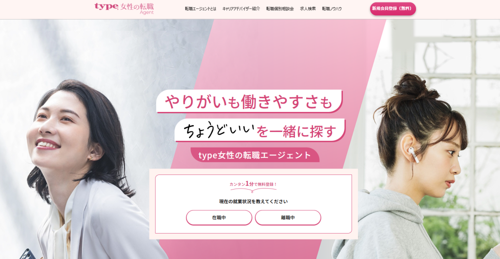 「type女性の転職エージェント」は、女性の転職に特化した転職エージェントです。