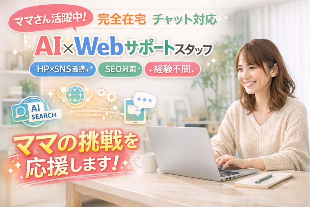 在宅ワークの求人・バイト・お仕事情報ならママワークス > 在宅ワークの求人一覧 > WEB・SNS運用の在宅ワーク求人一覧 > AI時代のWebサポートスタッフ募集(HP×SNS連携サポート)完全在宅|チャット対応 最終更新日:2026/01/30 AI時代のWebサポートスタッフ募集(HP×SNS連携サポート)完全在宅|チャット対応 株式会社ナレッジホールディングス 応募する(新規会員登録) ログイン 募集職種 (契約時の職種) AI時代のHP×SNS連携サポートサポートスタッフ 雇用/契約形態 業務委託 就業場所/業務遂行場所 自由 仕事内容 今回募集するのは、 AI検索・SEO対策を前提とした 【HP×SNS連携を支えるWebサポートスタッフ】です! 電話対応はありません♪ お客様とのやり取りは すべてチャット で行います! 落ち着いた環境で、 コツコツ・丁寧に作業を進めながら ⭐︎AI時代のWebマーケティングを裏側から支える⭐︎ とても大切なお仕事です! <主な業務内容> ・チャットでのお客様対応 確認事項や質問対応、進行状況の共有など ・HPとSNSを連携するシステムの設定・反映作業 ・AI検索・SEO対策を意識した情報整理 ・SNS投稿作業 テンプレートやマニュアルに沿って対応 ・各種Webツール・管理画面での設定、更新作業 ・社内メンバーとのチャット連携 ※Zoomや電話対応は原則ありません ※戦略設計、分析、営業は別担当が行います ※黙々と進める作業が中心です <一日の流れ(例)> ・9:30 業務開始!チャットをチェック♪ ・10:00 HP×SNS連携作業 ・11:30 SNS投稿、設定作業 ・12:00 休憩 ・13:00 チャット対応、修正内容の反映 ・15:00 社内メンバーと連携、最終確認 ・17:00 業務終了!お疲れさまでした♪ <この仕事の特徴> ・完全在宅、フルリモート! ・チャット対応のみで安心♪ ・コツコツ作業が好きな方にぴったり ・AI検索、SEOなど将来性のある分野に関われる ・日々の作業が、きちんと成果につながります! ⭐︎ママさんが活躍中の職場です⭐︎ 私たちの一番大切なモットーは、 「ママの挑戦を応援する」 ことです。 現在、 ⭐︎ママさんスタッフが約80名活躍中!⭐︎ 創業からこれまでに、 ⭐︎4名が出産を経験し、その後もお仕事を続けています!⭐︎ 「子育てをしながら働く」 「ライフステージが変わってもキャリアを続ける」 そんなママさんの挑戦を、 私たちは本気で応援しています! 急なお休みや家庭の事情も、 チームでフォローし合う文化があるので 安心して働いていただけます♪ ★今回の求人について★担当者よりメッセージ 私は、1歳半の子どもを育てるママです。 妊娠中からこの会社を起業し、 たくさんのママたちに支えられながら、 今日まで会社を続けてくることができました。 私は 「ママであることを理由に、挑戦をあきらめる」 そんな現実がどうしても嫌で、起業を決意しました。 子育ても、仕事も、どちらかを諦めるのではなく、 どちらも大切にできる働き方をつくりたい。 そんな想いで、今も ママが働きやすい会社を目指して取り組んでいます。 正直に言うと、 時にはスピード感のある環境で 負担をかけてしまうこともあります。 それでも、 今一緒に働いてくれているママたちから 「この会社が存続する限り、ここで働き続けたい」 と言ってもらえることが、私の原動力です。 ママだからこそ、挑戦を止めない。 ママだからこそ、成長し続ける。 そんな想いを持つ方と、 一緒に未来をつくっていきたいと考えています。 ★ママも、挑戦し続けていい★ その想いを胸に、今回この求人を募集させていただきました。 少しでも共感していただけた方、ぜひご応募ください。 お会いできることを楽しみにしています! 報酬 時間単価:1,100円(税込)~ ※定期的な業務単価増額制度あり! ※スキル・経験によって相談可能です! 掲載日 2026/01/21 〜 2026/01/31 成果物の納期予定日 業務委託契約書に準ずる 知的財産権の取扱い 業務委託契約書に準ずる 応募条件 ある程度まとまった稼働量をこなせる方 必須スキル ・チャットでの業務対応経験 ・PCの基本操作ができる方 (ブラウザ操作、複数タブ管理、入力作業など) ・Webツールや管理画面の操作に抵抗がない方 ・指示内容を正確に理解し、黙々と作業できる方 ・クライアントワークに抵抗がない方 歓迎スキル ・HP更新やCMS操作の経験 ・SNS投稿、運用サポートの経験 ・SEOやAI検索に興味、基礎知識がある方 ・Webマーケティング業界での実務経験 ・新しいツールやシステムに触れるのが好きな方 勤務時間/業務時間 自由 ※平日週3〜5日程度、9:00~18:00の間でまとまった稼働量(1日5~8時間程度)をこなせる方を想定しております! 勤務/業務開始日 即日 選考の流れ 書類選考→オンライン面接①→決定 選考期間 即日 こんな人に期待しています ・変化のスピードを楽しめる ・新しいやり方を柔軟に受け入れられる ・「なぜこの作業をするのか」を考えられる ・丁寧さと正確さを大切にできる 仕事の期間 長期 報酬の支払期日 月末締め翌月末支払い 支払い方法 銀行振込 諸経費 支給あり 支給対象品目 携帯貸与 応