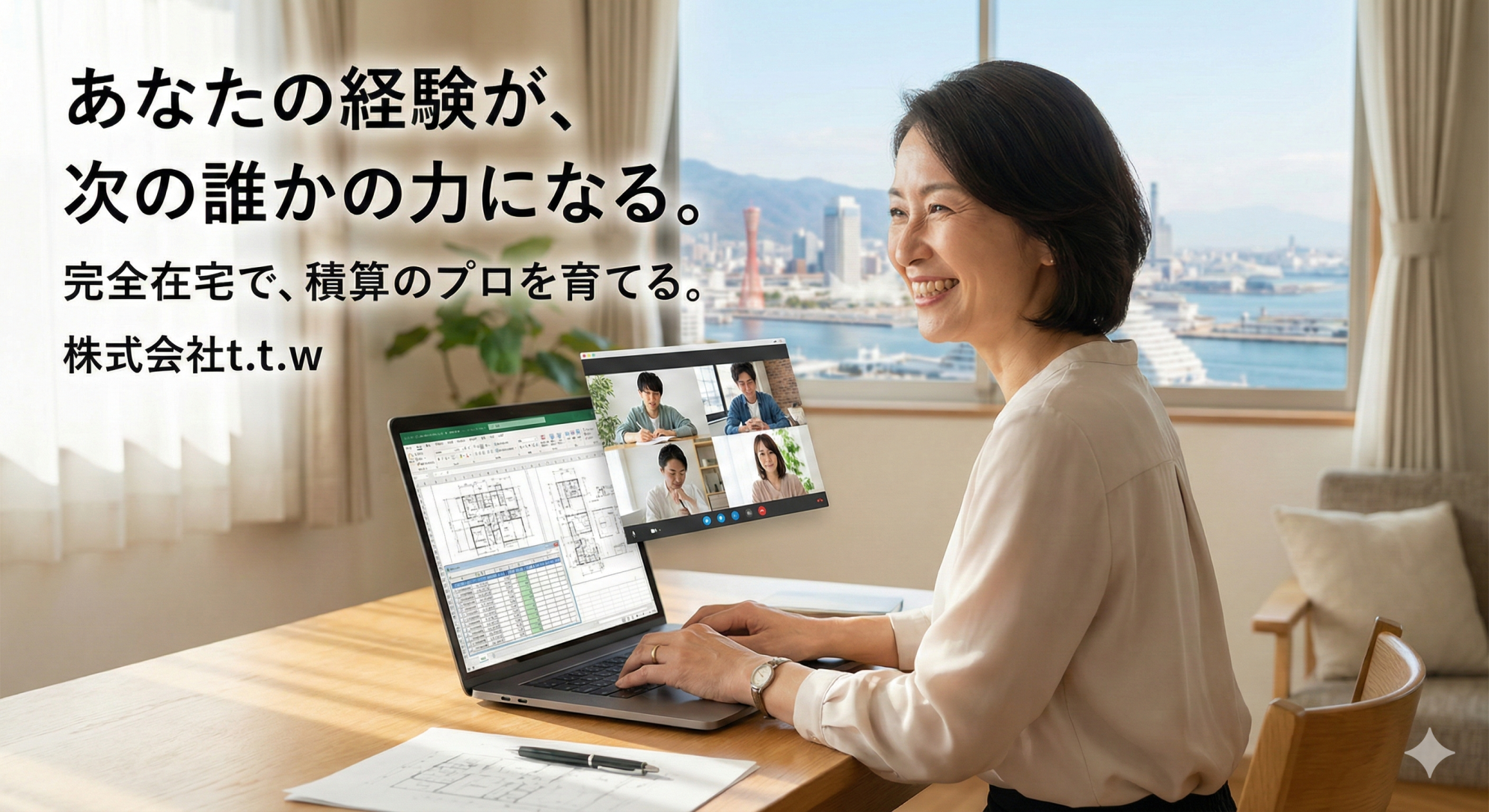 関連コラム Let’s start“在宅ワーク” 在宅ワークをはじめる時に必要なことって? これから在宅ワークを考えている方に知っておいて欲しい情報が満載です! コラム一覧を見る > 在宅ワーカー体験談 在宅ワークにはどんな仕事があるのでしょうか。 様々な在宅ワーカーの仕事についてリアルな声をご紹介♪ コラム一覧を見る > 在宅で働きやすい環境づくり 在宅ワークをする際に重要になってくる、ご自宅の環境。 現役の在宅ワーカーが働きやすい様々なアイデアをご案内しています。 コラム一覧を見る > おすすめコラム 主婦が安全に働ける在宅ワーク20選!仕事選びのポイントも押さえよう★ コラムを見る > パソコン一つで一人でも自宅でできる仕事をドーンとご紹介♪ コラムを見る > 自宅でできる仕事に役に立つ資格とは?在宅ワークを考えている方必見です! コラムを見る > 体験談からわかる在宅ワークの実態をご紹介! 在宅ワークの選び方。怖い案件の見分け方など紹介します! コラムを見る > 地方法人特別税とは?計算や申告納付の方法・地方法人税との違いについて コラムを見る > あなたは知ってる?慶弔費の正しい処理の仕方について詳しく解説します♪ コラムを見る > 在宅WEBライターの文字単価について徹底解説!まずはコツコツ実績作りから♪ コラムを見る > クラウドソーシングは稼げる?必要なスキルや高収入を得られるジャンルをご紹介 コラムを見る > 専業主婦のメリット・デメリットを紹介!在宅ワークがオススメの理由は? コラムを見る > 在宅ワーク求人サイト【ママワークス】をご覧の皆様 株式会社t.t.wの求人をお探しなら、「アイドマ・ホールディングズ」が運営する【ママワークス】をご利用ください。 積算トレーナー / 教育担当(建築積算・CAD)に関する在宅ワーク求人を豊富に掲載しております。