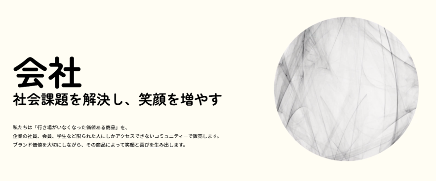 会社 社会課題を解決し、笑顔を増やす 私たちは「行き場がいなくなった価値ある商品」を、 企業の社員、会員、学生など限られた人にしかアクセスできないコミュニティーで販売します。 ブランド価値を大切にしながら、その商品によって笑顔と喜びを生み出します。 | 株式会社xNEXTの求人
