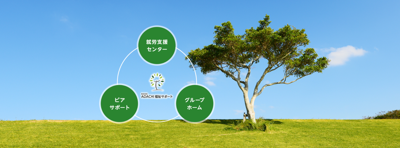 株式会社ADACHI福祉サポートは 障がいのある方や支援者に限らず、年齢や性別を問わず、人と人が触れ合い、助け合い、 共に成長することを大切にしています。 そうして築かれた強い絆をもとに、誰もが充実した暮らしを実現し、 障がいの有無にかかわらず、誰もが当たり前に活躍できる社会を目指します。