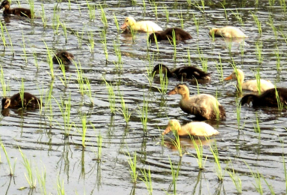 戦後間もなく開始した米作りも、時代と共に大きな矛盾を感じるようになっていました。 自然循環を無視した工場生産のような稲作は、土を無視している。他の生物を排除した利己主義的な発想の農業が将来にわたりこれでいいのか。作る人にとっても、食べる人にとっても、地球にとっても、誰にも害をきたさない農業はないのかと思い、そのような農業をするには、自然の摂理に沿った、元に還る農業でなくてはいけないと感じたのです。 自然の摂理を取り入れた独自性のある農業形態にすべきだと痛感し、自然界のすべての生物が共生している姿に一歩でも近づくことを目指して、アイガモ等を取り入れた自然農法を始めました。